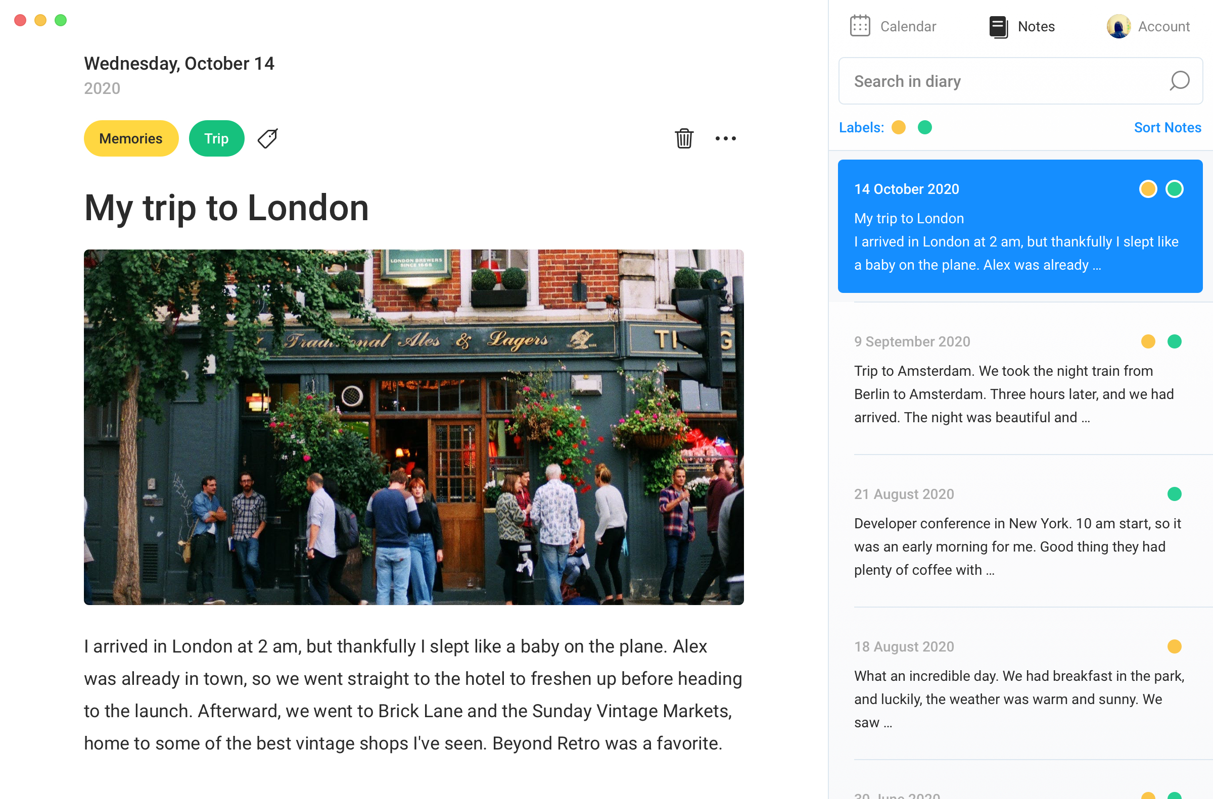 JustDiary takes the pain out of grouping and ordering your notes. No mess. No chaos. No time-consuming clutter to sort through. And that means no idea is left behind.